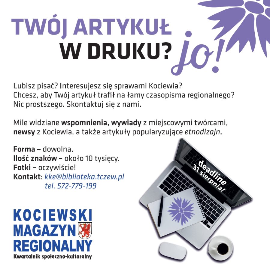 Z radością informujemy, że jeszcze w tym roku ukaże się świeżutki, długo wyczekiwany, 110. numer Kociewskiego Magazynu Regionalnego!