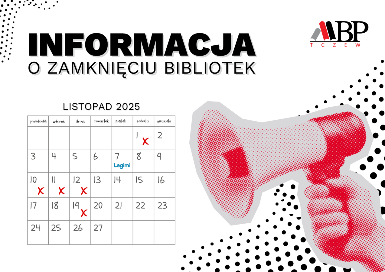 Listopad to miesiąc wyjątkowy, dlatego informujemy o dniach i lokalizacjach, w których tczewskie biblioteki będą nieczynne dla czytelników: