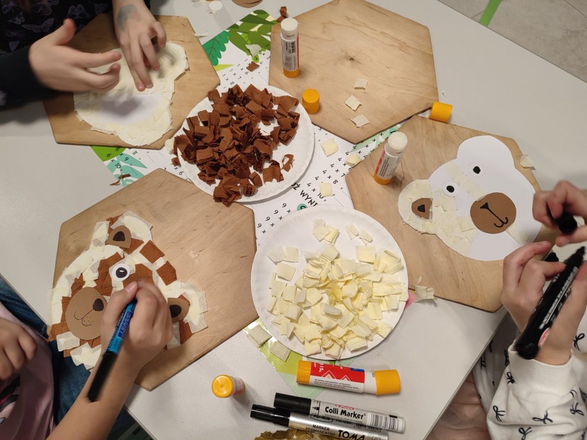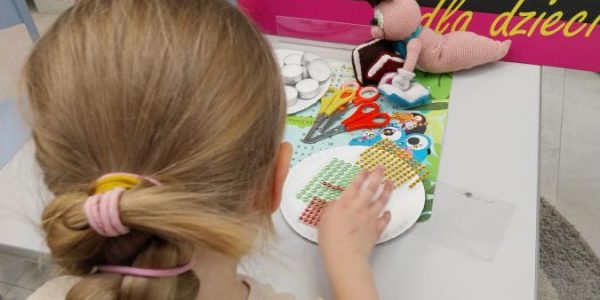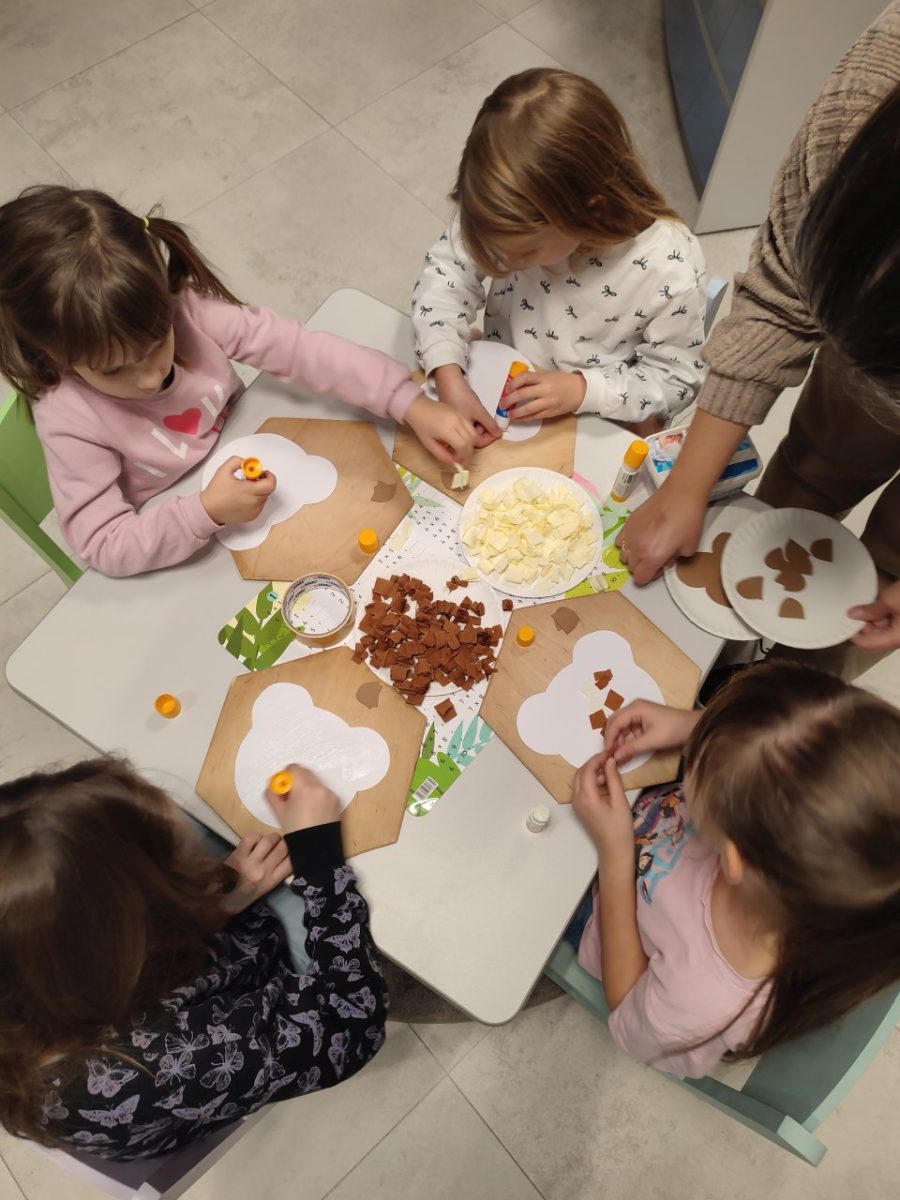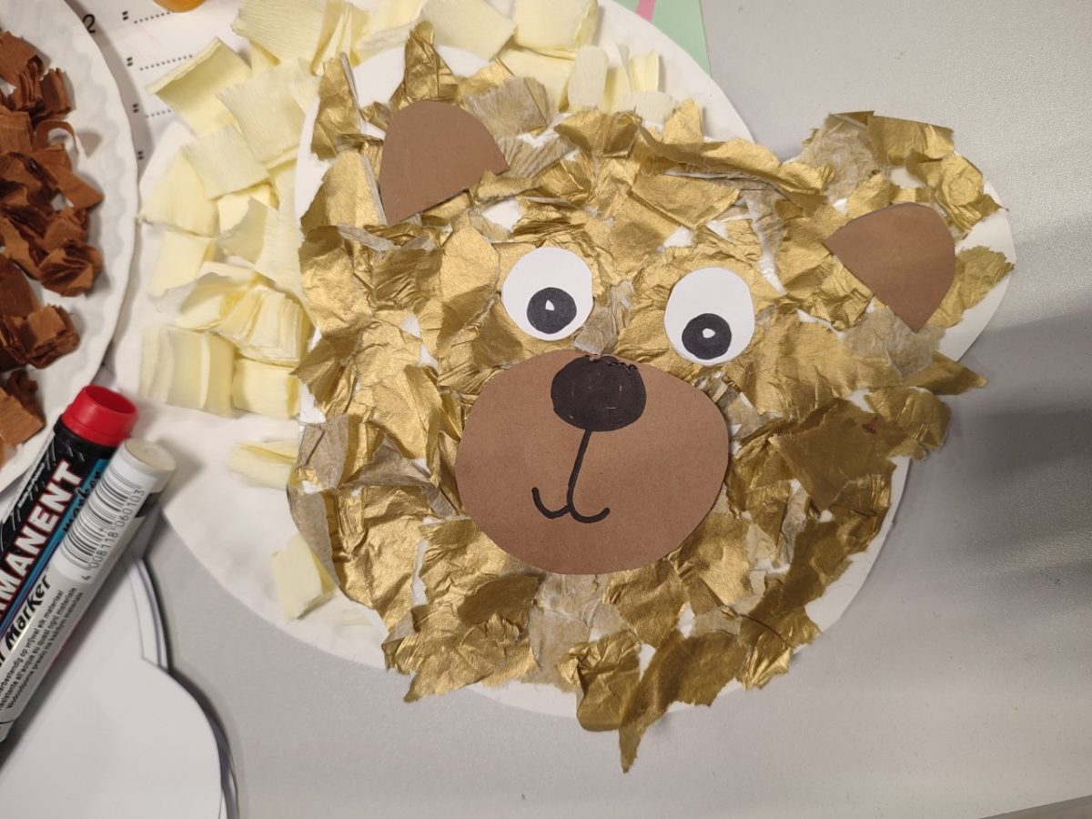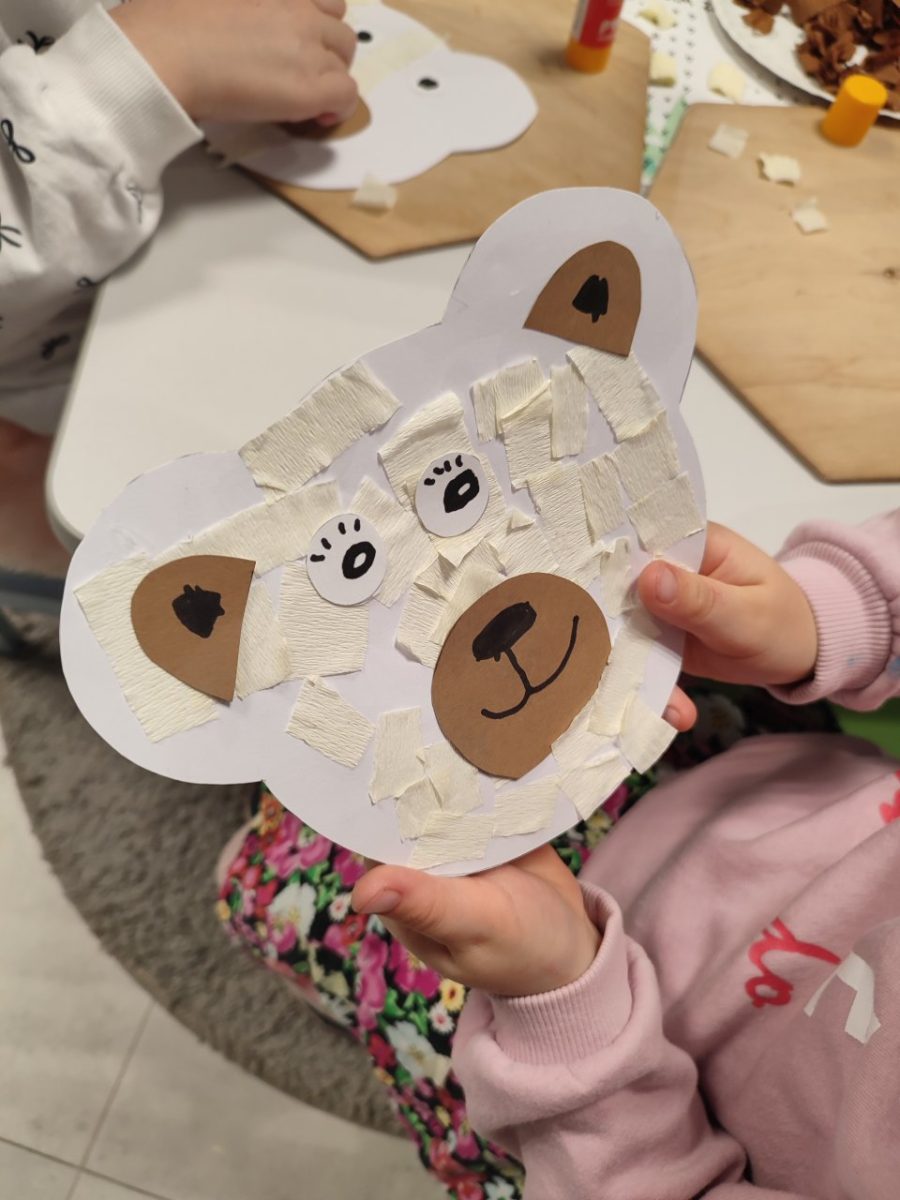 Tradycyjnie po czytaniu były wspólne prace plastyczne – tym razem dzieci, z papieru i bibuły, zrobiły głowy misia. Uśmiechnięte mogą stać się ozdoba doniczek i biurek małych Klubowiczów