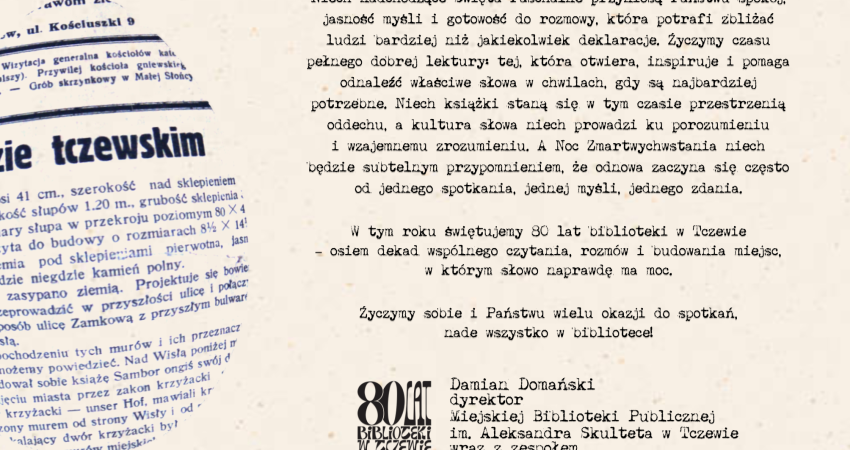 W tym roku świętujemy 80 lat biblioteki w Tczewie – osiem dekad wspólnego czytania, rozmów i budowania miejsc, w którym słowo naprawdę ma moc.